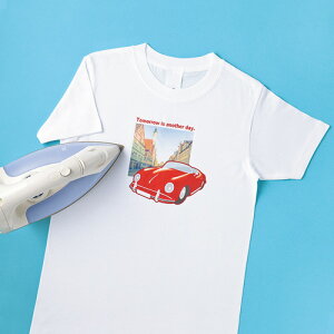 オリジナルTシャツがアイロンでらくらく作れる用紙インクジェットプリンタで印刷した画像を、アイロンを使ってTシャツなどの布に簡単に転写することができる用紙です。白・淡色の布用。(アイロンで熱をかけることで、転写紙自体が透明