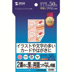 サンワサプライパソコンオフィス用品インクジェット用紙郵政ハガキに近い厚みで、リアルに再現可能な試し刷りハガキ。●印刷位置や雰囲気が事前に確認できる試し刷り用の用紙です。 ※試し刷り用の用紙なので、写真などの忠実な再現