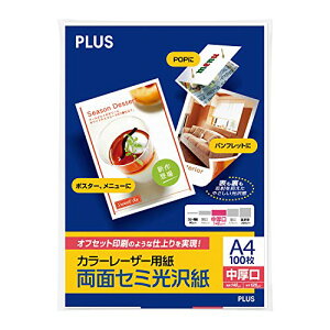 ◆商品名:プラス カラーレーザー用紙 両面セミ光沢紙 A4 中厚口 100シート入 56-276規格:A4外形寸法:297×210mm数量:100シート入紙厚:140μm(0.14mm)メーカー品番:56-276パッケージ重量:...