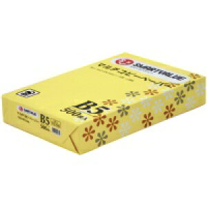 箱サイズ幅 394mm×奥行274mm×高さ230mm 用紙サイズB5(182×257mm) 入数 5000枚 紙厚 約91μm 坪量 約68g/平方メートル 白色度 ISO約88% 備考 中性紙。