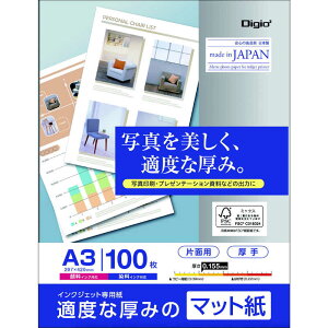 インクジェット用つやなしマット紙。企画書のカラー印刷など簡単用途に。A3サイズ・100枚入り。