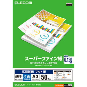 EJK-SUPA350 ELECOM EJKSUPA350 エレコム スーパーファイン紙 高画質 薄手 片面 A3 50枚