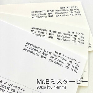 製品仕様 商品名 Mr.B(ミスタービー)90kg メーカー名 特種東海製紙 サイズ ・A3(420mmx297mm) 厚さ 0.14mm 色 全3種展開 ・スーパーホワイト ・ホワイト ・オフホワイト...