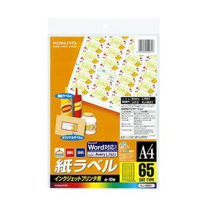 ■商品内容●A4サイズ、65面付けのインクジェットプリンタ用紙ラベルです。10シート×5冊セット。●Microsoft Word対応しているので専用のラベル作成ソフトが無くても簡単にラベル作成ができます...