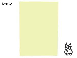 中厚口、レモン。1包(500枚入)。寸法/A4判:210×297mm。坪量(紙厚)/76.7g/(約0.1mm)。包装数:1/16。