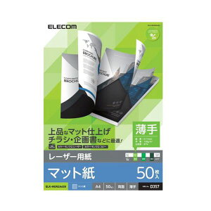 レーザープリンタ用 両面マット紙 薄手 A4サイズ 50枚入■各社レーザープリンタ、複合機、コピー機に対応した専用紙です。■厚み0.11mmの薄手タイプでしっかりしたコシがあり、チラシや企画書の印刷などに最適です...