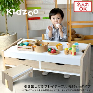 キッズーシリーズのプレイテーブル収納付き。2杯の引き出しがあることで、遊んだおもちゃなどをその場でお片付けすることができます。