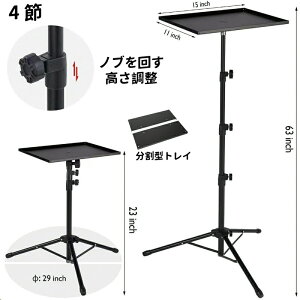 商品説明 商品名 折り畳み式多機能プロジェクタースタンドです。 カラー ブラック トレイサイズ 約38.5cm×28.5cm×1.5cm、また約57cm〜160cm高さ調節可能 重量 約2.7kg 材質...
