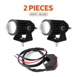 TRAX 2個 タイプ: 2ピース オートバイ スポットライト プロジェクター レンズ デュアル カラー ミニ LED ヘッドライト イエロー ホワイト ドライビング ランプ...