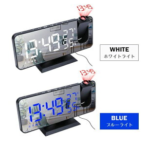 時刻を投写!多機能目覚まし時計 LED デジタルクロック 投影時計 プロジェクタークロック LED 時計 デジタル時計 目覚まし時計 プロジェクター ミラー 温度 湿度