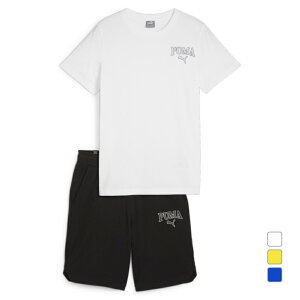 ◇お得なTシャツとショーツのセット◇商品情報トレンドとクラシックなカレッジスタイルを融合させたプーマのスクアッドコレクション。肌触りがよく柔らかなジャージー素材のトップスと、夏にぴったりな膝上丈のショートパンツがセット