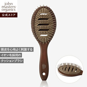 イオン毛採用のクッションブラシ。 トルマリン配合のイオン毛が頭皮に心地よい刺激を与えるパドルブラシ。頭皮マッサージにおすすめ。竹製の持ちやすい太さとフィット感のハンドルで、効果的なスタイリングを