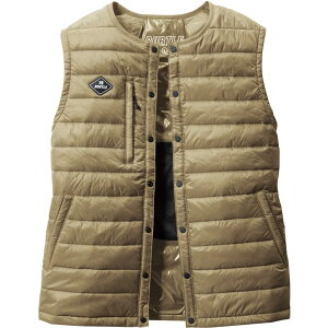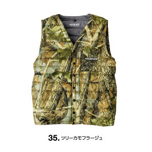 中綿にファイバーダウンを使用した薄くあたたかい軽量防寒ウェア シンプルなベーシックカラーからワイルドなカモフラ柄までラインナップ。 軽量でソフト、保温性が高くかさばらないのでインナーとしても着用でき、普段着やアウトドア