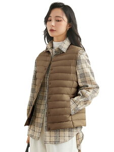 ノーカラーのボタンダウンスタイルで、春秋冬のおしゃれに欠かせないアイテムのインナーダウンベスト!