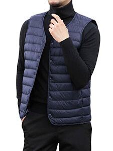 ◆商品名:DUZTELYI ノーカラー ダウンベスト メンズ ウルトラライト インナーベスト 軽量 防寒 コンパクト収納袋付き DU520 (XL, ネイビー)ウルトラライトダウンベストはこれからの季節にぴったりだ...
