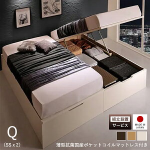 組立設置付 跳ね上げ 収納ベッド 薄型抗菌国産ポケットコイルマットレス付き 2人で快適な睡眠を マットレスが分かれているので、片方の振動が 伝わらずお互いの睡眠時間を邪魔しません。 別々に使用することも可能な仕様...