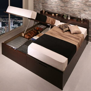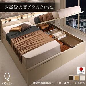 ベッド ベット 収納付きベッド 収納 収納付 跳ね上げベッド 深型 連結 大容量 コンパクト 薄型スタンダードボンネルコイルマットレス付 縦開 クイーン(SS×2)a120041500040902<b...