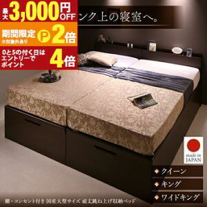 ベッド ベット クイーン 収納付きベッド 収納 収納付 跳ね上げベッド 深型 連結 すのこベッド すのこ 大容量 日本製