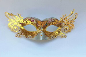 ー:ホワイト/ブラック/ピンク/ブルー/シルバー/ゴールド◆ベネチアのカーニバルでおなじみのベネチアンマスク ※商品画像にもございますとおり、接着面(糊付け)の粗さが目立つ