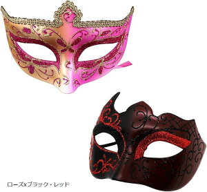 649kt0商品名仮面 ベネチアンマスク 仮面舞踏会 マスク お面 変装 仮装 ダンス 2個セットブランドArchnoteカラーローズxブラック・レッド仮面 ベネチアンマスク:贅沢に施されたキラキラ輝くラメが...