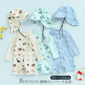 *夏の水遊びにおすすめなオールインワンタイプの水着です。 *アルパカ柄やダイナソーの総柄イラストがとても可愛いです。無地の恐竜はとさか付き。 *UPF50+で95%以上の紫外線をカット。<...