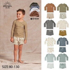 -サーフパンツ -キャップ 帽子付き:水着と同色同柄の帽子付き。 サイズ:80/90/100/110/120/130 【紫外線対策 -優れたUVカット効果】長袖ラッシュガードとショートパンツの組み...