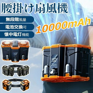 ベルトファン 腰掛け扇風機 携帯扇風機 ウエストファン 小型扇風機 ベルト掛け 首掛け 手持ち 3000mAh 4段階風量調節 USB充電式 コンパクト 超軽量 強力 大風量 工事 アウトドア スポーツ...