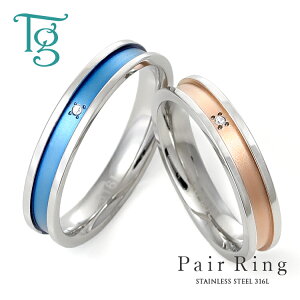 ダイヤモンドをあしらったステンレスペアリング。 ふたりの絆がいつまでも続きますように… ブルー&ローズゴールド、シンプルだから着けやすい♪【刻印無料】 商品詳細 刻印