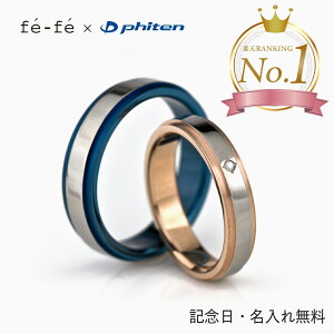 ペアジュエリーブランド fefe(フェフェ)とのコラボレーションアクセサリー。存在感のあるフォルムが特徴のチタン製のペアリング。男性用はブルー、女性用はピンクゴールド