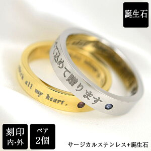 ペアリング ステンレス 平打ち 4mm 誕生石入 7号〜21号 刻印無料 送料無料 シンプル 2 メンズ レディース 大きいサイズ ホワイトデー お返し 可愛い おしゃれ プ