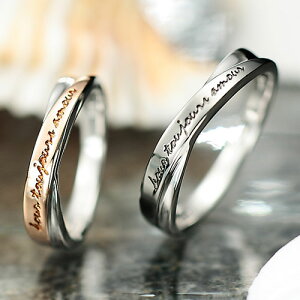 ペアリング リング 指輪 アンティーク 刻印 名入れ メッセージ ひねり ツイスト 金属アレルギー ピンク ゴールド シルバー ペア メンズ レディース カップル 2個セット。