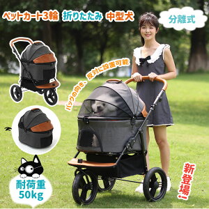 ペットカート 折りたたみ 分離式 3輪ペットカート 取り外し可能 耐荷重15kg 猫犬兼用 猫 小型犬。
