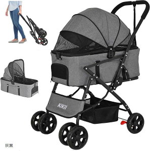236lh9oq商品名ペットカート 分離型 犬用ベビーカー 犬 猫バギー 4輪 小型犬 中型犬カート リード2本付き 前輪360°回転 後輪ブレーキ付 レインカバー付き 耐荷重25Kg 灰黒色ブランドKIKIIカラー灰黒色...