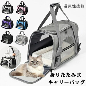 ペットキャリー 折りたたみ 猫用 小型犬用 ドライブ 通院 避難用 通気性 洗えるマット 軽量 丈夫 耐荷重8kg コンパクト収納 ショルダー対応。