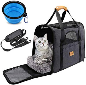 最大2匹の猫を入れることができ、肥えた猫、子猫、小型犬に適している 携帯折りたたみ収納:キャリーバッグ猫は軽くて持ち運びしやすく、使わない時は折りたたみ収納ができて省スペース、二重の取っ手は手を締めず...