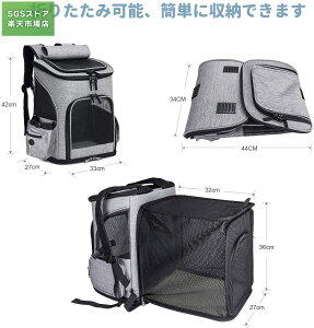 【商品仕様】サイズ:幅33cmx奥行27cmx高さ42cm。本体重量:1.4kg。適用体重:8kgまで。猫?小型犬?うさぎ?小型ペットに適用。 【拡張可能大空間】普通のリュックだけでなく、ペットハウスとしても使えます。バッグの後部を開...