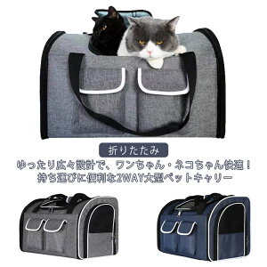 ゆったり広々設計で、ワンちゃん・ネコちゃん快適!持ち運びに便利な2WAY大型ペットキャリー。ふわふわ中敷きマットが付属でペットも安心。また、マットは簡単に取り外しが出来るからお手入れも楽ちん小物が収納できるポケットが付いて