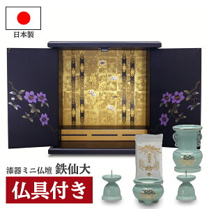 商品説明扉の内側の画かれた装飾が美しい”鉄仙”。扉表面は汚れが目立ちにくい乾漆調艶消し塗りです。優美な内部の装飾はすべて蒔絵で作られており、スペ−スを広くお使いいただけます。 商品名漆器ミニ仏壇 "鉄仙(てっせん)"小タ