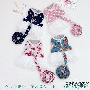 ●レースフリルがかわいい女の子用ハーネスリードセットです?●首元と胴周りをマジックテープでとめる仕様なので着脱も楽々です?●裏面はメッシュ素材で通気性抜群です?●柔らかパッド付で犬の負担になりません?●生地: 綿?ポリエステ