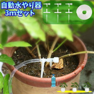 旅行や出張などの外出中にプランターや植木鉢の植物に 自動で水やりができる自動水やり器【3mセット】です。 〜セット内容〜 ホース3m ドリップバルブ3個 ジョイント3個 挿しピン3個 ※ペットボトルは付属しておりません。 ※こちらの5mセ