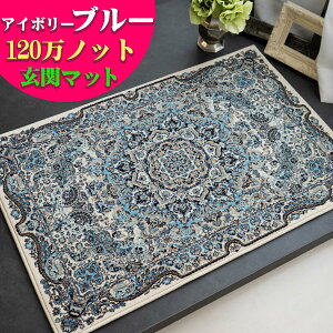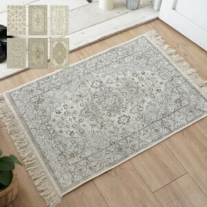 ロイヤルパレス14041 60x85cm 】 玄関マット ヴィンテージ アンティーク 風 おしゃれ シルクタッチ ペルシャ絨毯 柄 ラグ 薄手 リビング インテリア モケット織り ラグカーペット...
