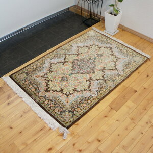 シルクのような滑らかな肌触りと光沢が特徴の絨毯です。触るとひんやり感じられて気持ちが良く、しなやかで丈夫です。本場ペルシャ絨毯の産地イラン(ペルシャ)のデザイナーが柄を考案した