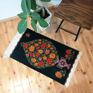 シルクのような滑らかな肌触りと光沢が特徴の絨毯です。触るとひんやり感じられて気持ちが良く、しなやかで丈夫です。本場ペルシャ絨毯の産地イラン(ペルシャ)のデザイナーが柄を考案した