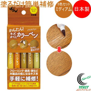 パンプキン、コーヒー、ブラウン、サンドの5色をセットにしたお得セット。家具・テーブル・イス・扉・フローリングなどの木部のすりキズ補修に最適。