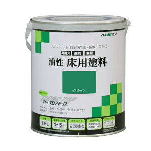 油性床用塗料フロアトップ1.6Lグリーン。■業務用で定評のある「アトムフロアトップ」シリーズ。■摩耗や衝撃に強く、乾燥も早いので作業性良好。■歩行約2時間、重量物約24時間と短時間で交通開放ができます(気温23℃時)...