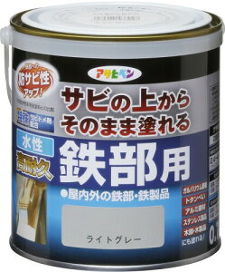 アサヒペン 塗料 ペンキ 水性高耐久鉄部用 0.7L ライトグレー 水性 サビの上からそのまま塗れる ツヤあり 低臭 サビドメ剤配合 特殊フッ素樹脂配合 紫外線劣化防止剤配合 日本製 水性で塗りやすい低臭タイプの鉄部用塗料です...