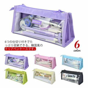 女性 筆箱 クリアペンケース 透明 シンプル 仕切り クリア 自立
