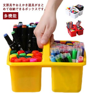 文房具やおえかき道具がまとめて収納できるボックスです。デスクに散らかるペンを徹底収納!持ち運びやすいハンドル付きです。4つの収納穴を設計して、鉛筆など長いもの、定規など小物それぞれ分けて収納できます。デスク周りは様々な