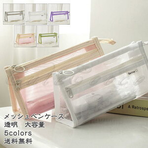 送料無料 メッシュ ペンケース 2個セット 高校生 クリアペンケー
