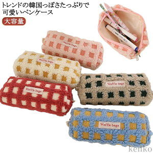 トレンドの韓国っぽさたっぷりで可愛いペンケース。まるでワッフルのようなボアデザインがおしゃれ♪大容量でペンなどの文房具やメイクブラシなど収納できます。可愛らしいデザイン!女の子の憧れを詰め込んだペンケースです。もこも